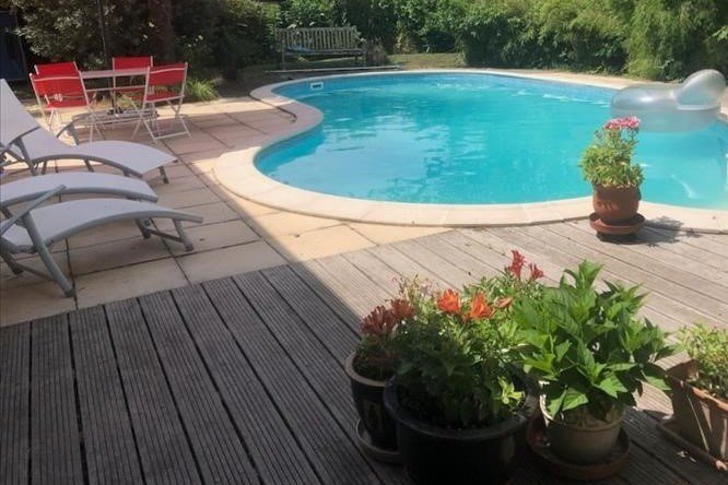 Superbe jardin ensoleillé, au calme et sans vis-à-vis avec une piscine au sel.