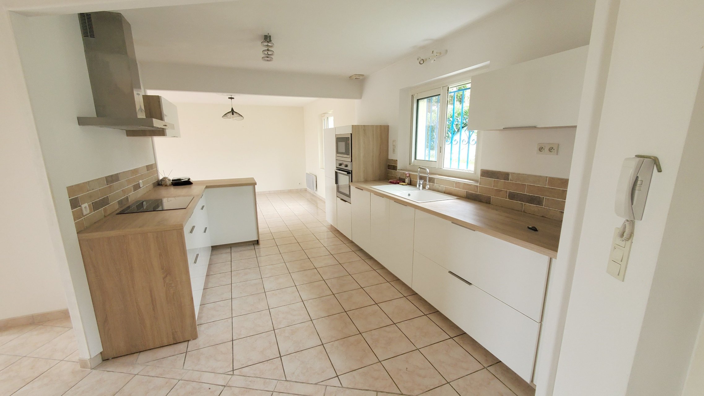 En entrant dans la maison, découvrez une cuisine aménagée et équipée d'environ 10m2, ouverte sur une grande pièce de vie d'environ 50m2, tournées vers une grande terrasse pourvue d'un barbecue en pierres, qui vous permettra de contempler la vue imprenable qu'offre ce bien.